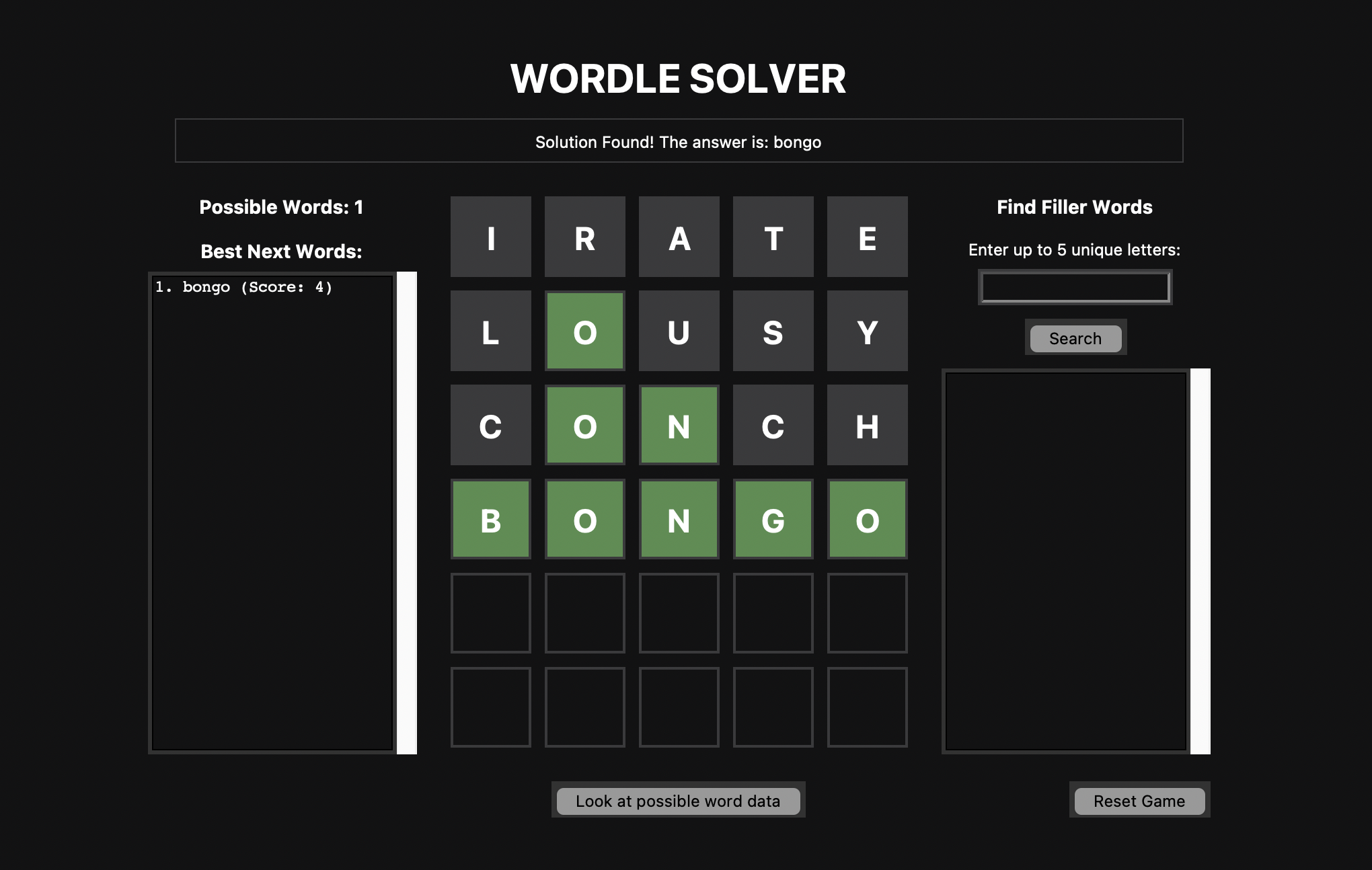 An interactive Wordle solver that suggests optimal guesses using letter frequency data and provides real-time data visualizations.